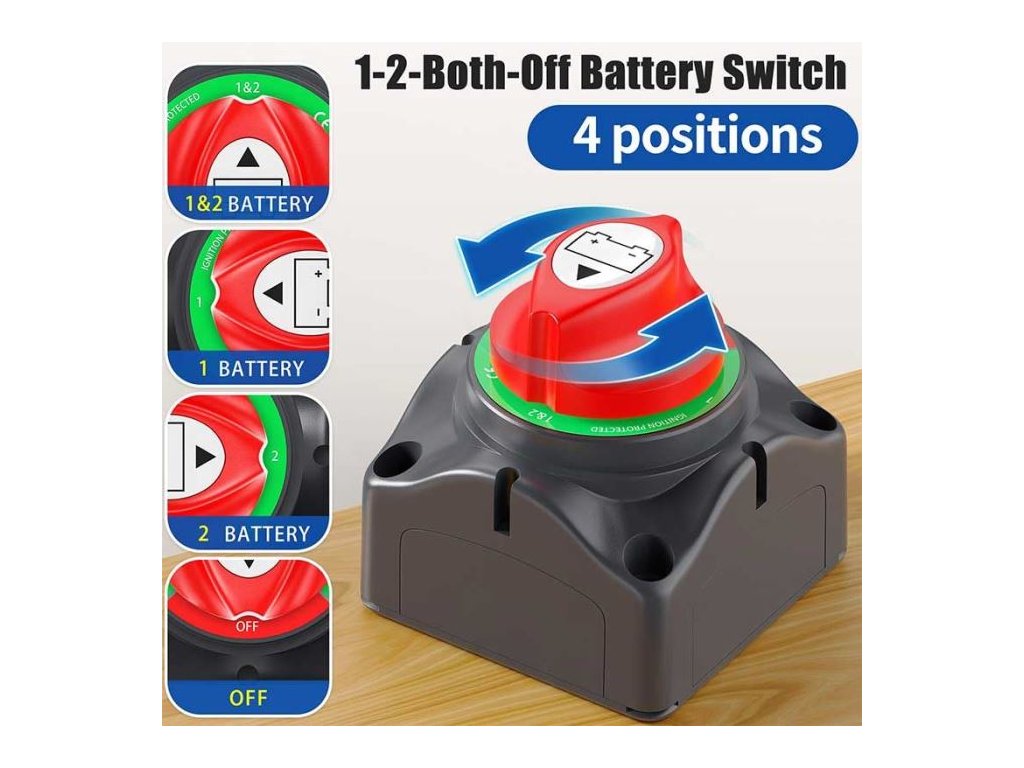 Odpojovač a přepínač baterií 275A ASW-A701S Přepínač baterií primárně určený pro lodě umožňující přepínat dvě baterie k jednomu spotřebiči.**Specifikace:**