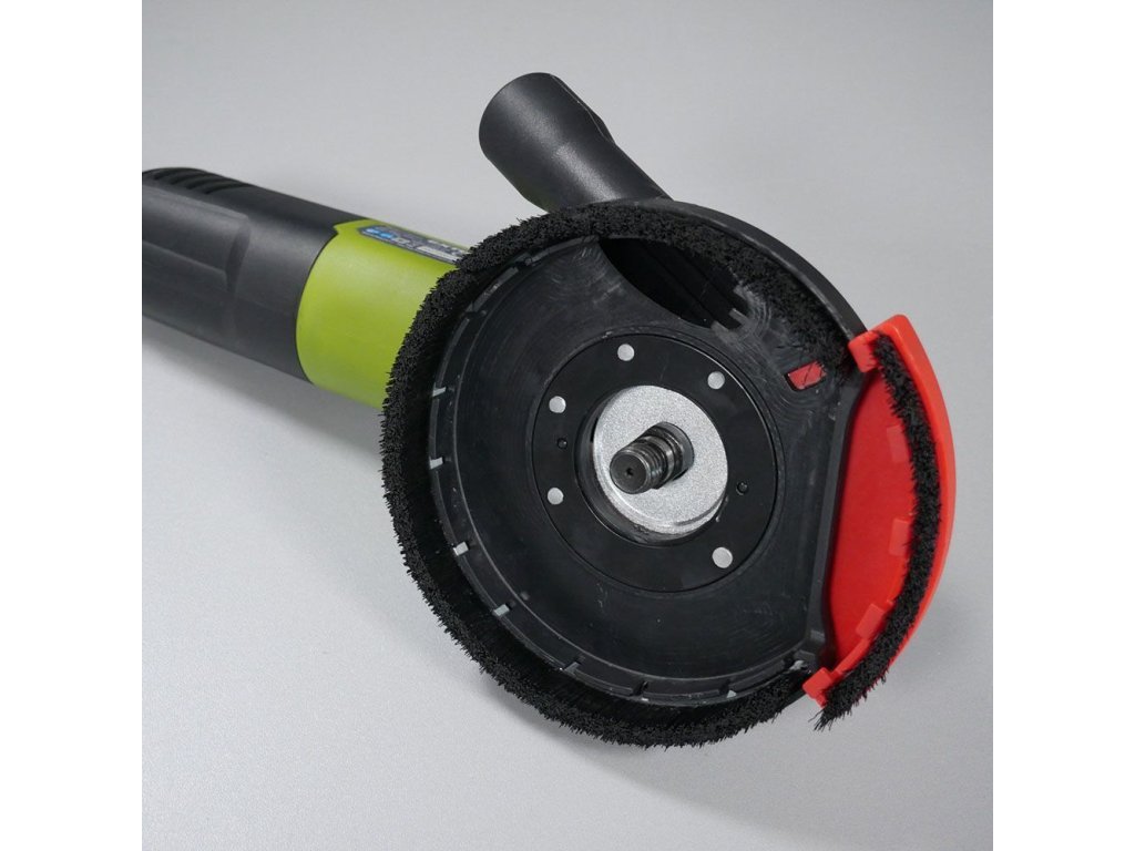 Odsávací kryt umožňuje odsávání škodlivého prachu při broušení povrchu. Kryt je připevněn k přírubě vřetena namísto standardního kovového krytu. Vhodný pro úhlové brusky s průměrem kotouče 115 mm - 125 mm. V přední části nastavitelná posuvná část krytu - umožnuje snadný přístup do rohů a k okrajům ploch.