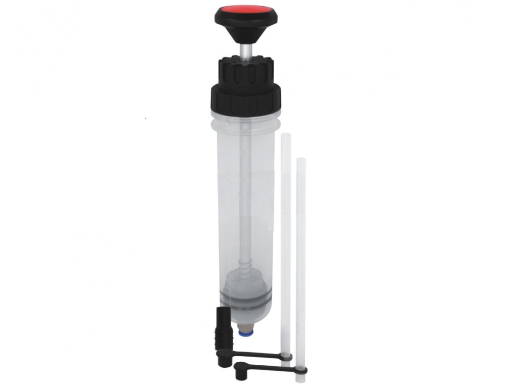 Velká průhledná pumpička/odsávačka pro manipulaci s kapalinami. Například k odsátí brzdové kapaliny, chladící kapaliny, převodového oleje, kapaliny do posilovače řízení, odvzdušnění cyklistických brzd, plnění bezdušových MTB kol sealantem apod.