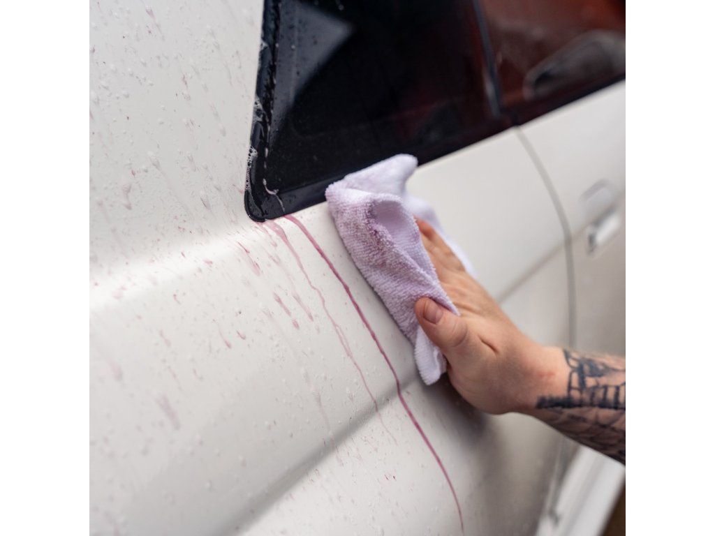 2. Počkejte, až reakce zabarví kontaminaci do fialova.