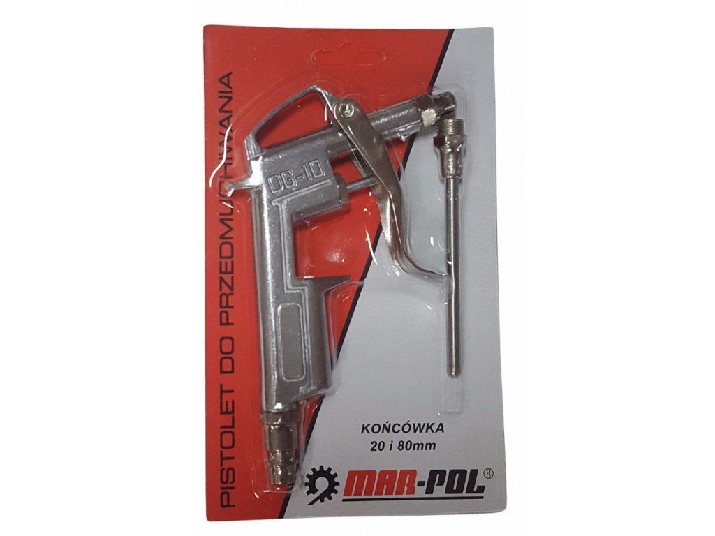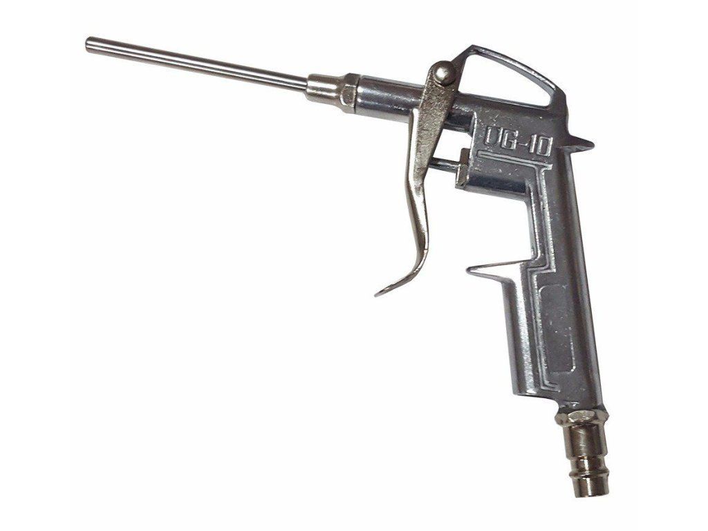 Ofukovací pistole k odstranění nečistot proudem vybavená krátkou a dlouhou tryskou.