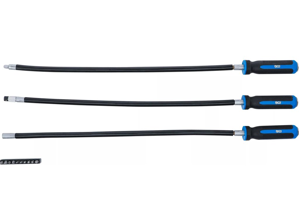 Sada ohebných šroubováků je ideálním řešením pro práci na obtížně přístupných místech, například u hluboko uložených šroubových spojů nebo hadicových spon chladicí kapaliny.