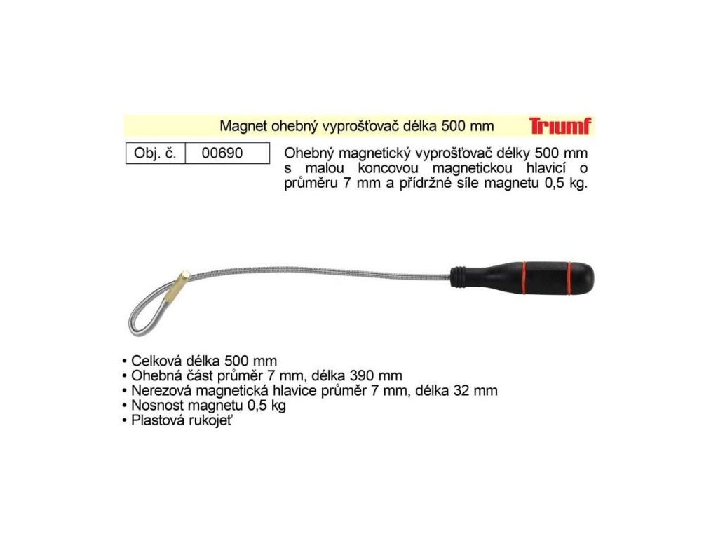 Ohebný vyprošťovač 500mm s magnetem, nosnost 500g Délka celková: 500mm. Ohebná část průměr 7mm, délka 390mm a magnetická hlavice o průměru7 mm a délce 32mm. Nosnost magnetu 500gDoplňkové parametry