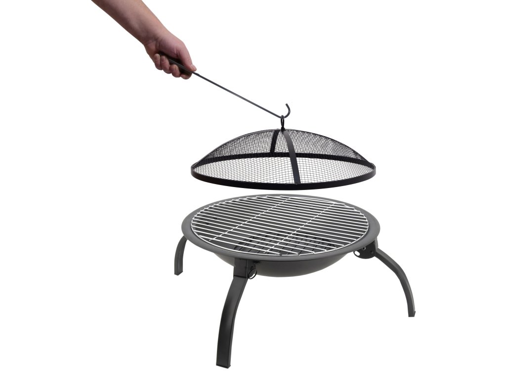 Ohniště je navíc vybaveno roštem a čtyřmi skládacími nohami pro lepší skladnost.