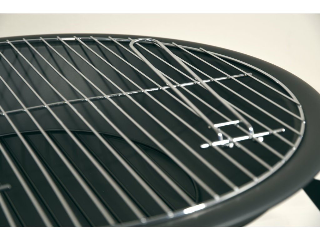 Konstrukce ohniště je vyrobena z kvalitní oceli s vysokoteplotním černým nátěrem. Pro grilování je ohniště opatřeno ocelovým roštem průměru 48 cm. Na popel je ohniště opatřeno ocelovou mřížkou se smaltovanou povrchovou úpravou.