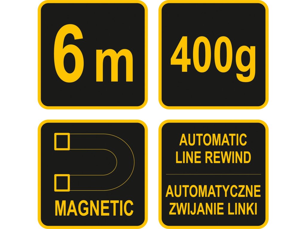 Olovnice je opatřena velmi silným magnetem pro upevnění na kov na svislé konstrukční prvky. Kazeta je opatřena mechanismem pro automatické navíjení.