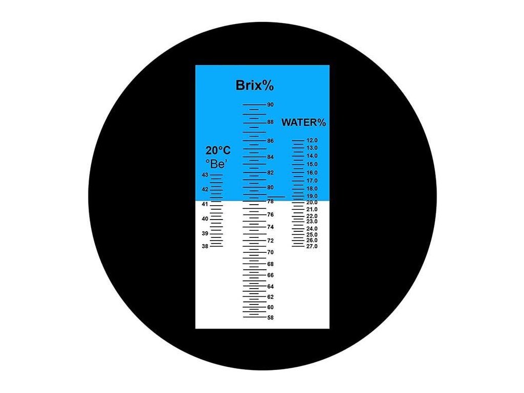 Rozsah stupnice pro měření cukernatosti: 58 % až 90 % Brix, rozlišení 0,5%