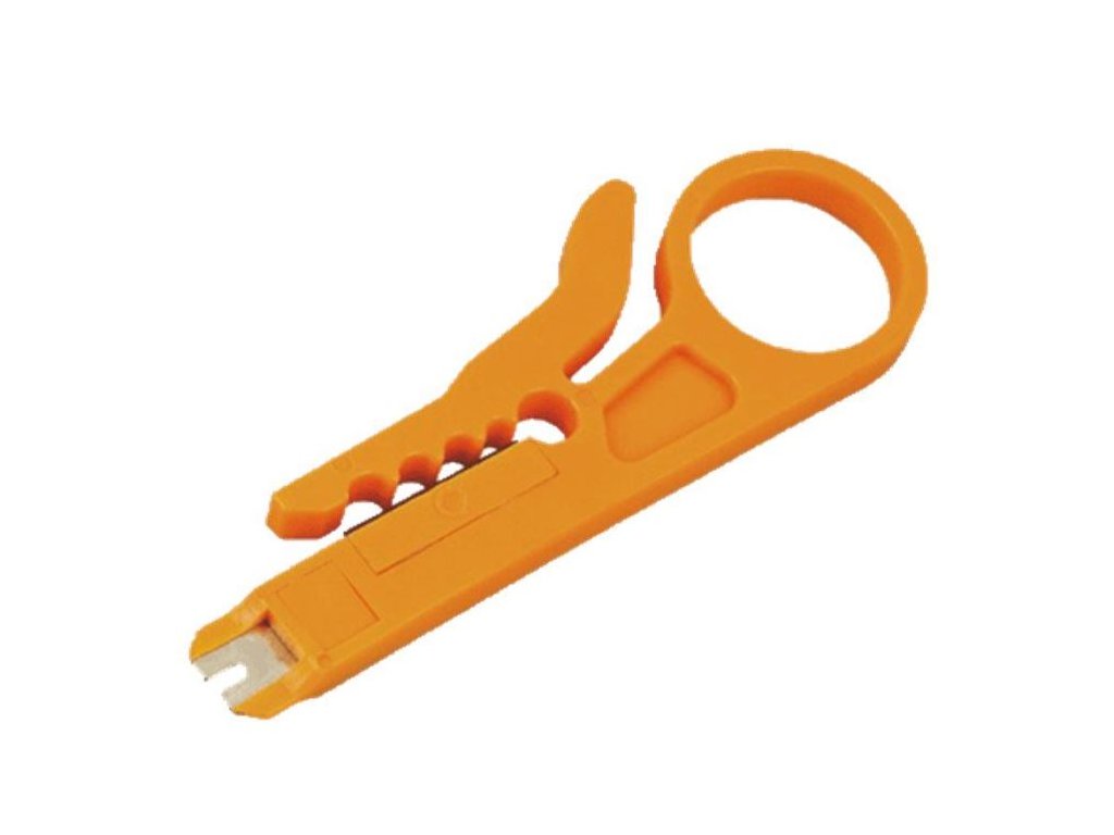 Ořezávací nástroj plastový DATACOM Ořezávací a narážecí nástroj s jednoduchou konstrukcí určený:k naražení jednotlivých vodičů do zářezového pole typu 110 (bez střihu přebytečného vodiče).