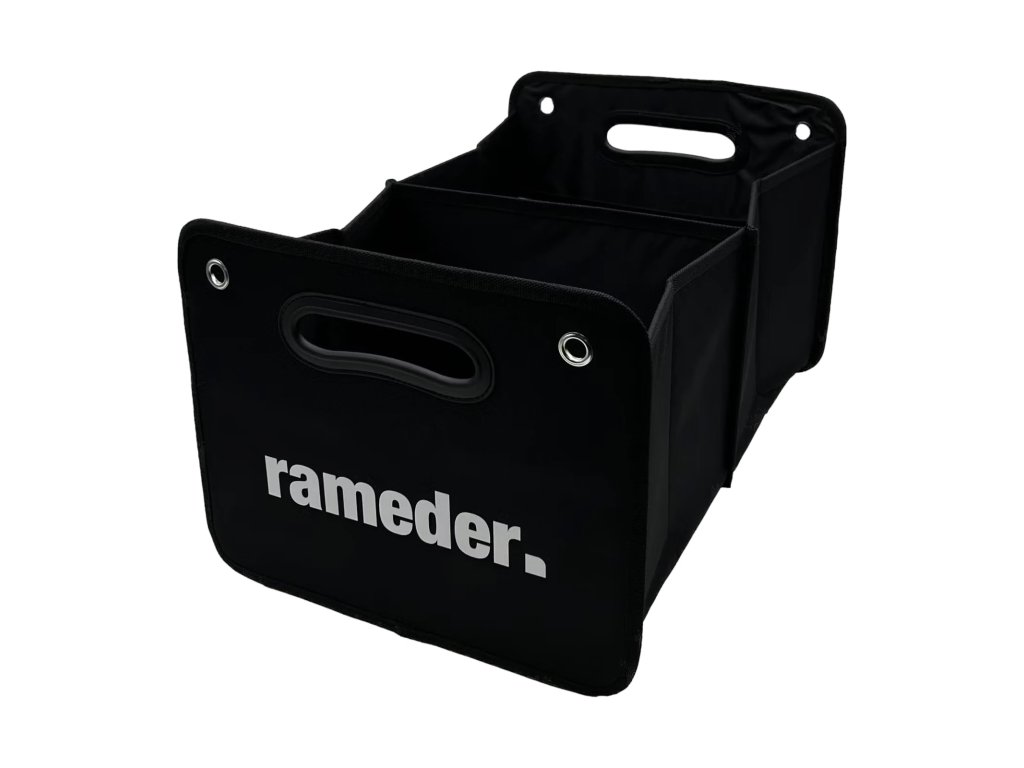 Organizér kufru Rameder se dvěma přihrádkami pro uspořádanou přepravu různých nákladů. Organizér má polstrovanou základnu a několik kapes na menší předměty nebo dokumenty.