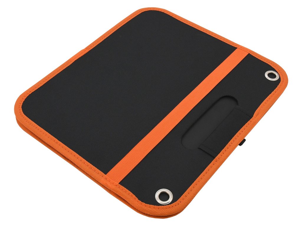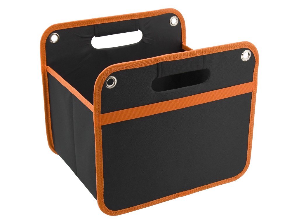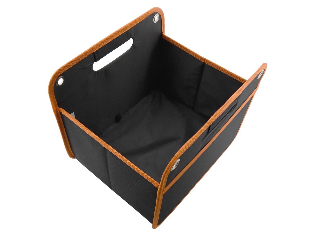 Organizér s rozměry 32 x 29 x 26 cm je zhotoven ze 100% polyesteru, kvalitně obšitého oranžovým lemem.