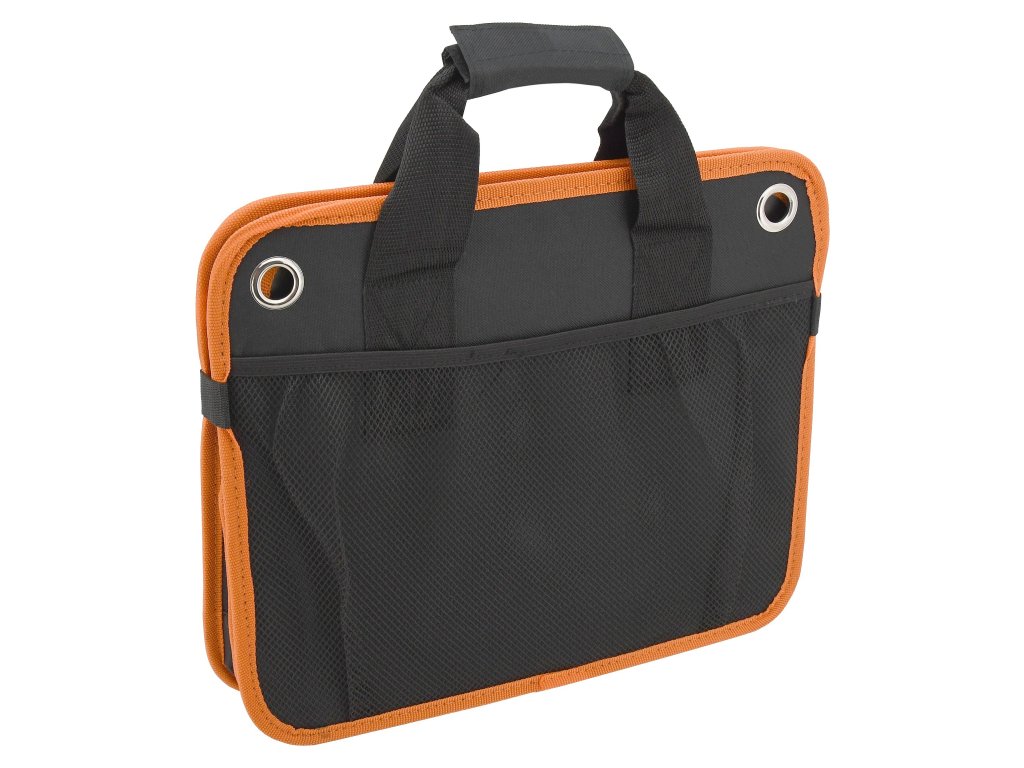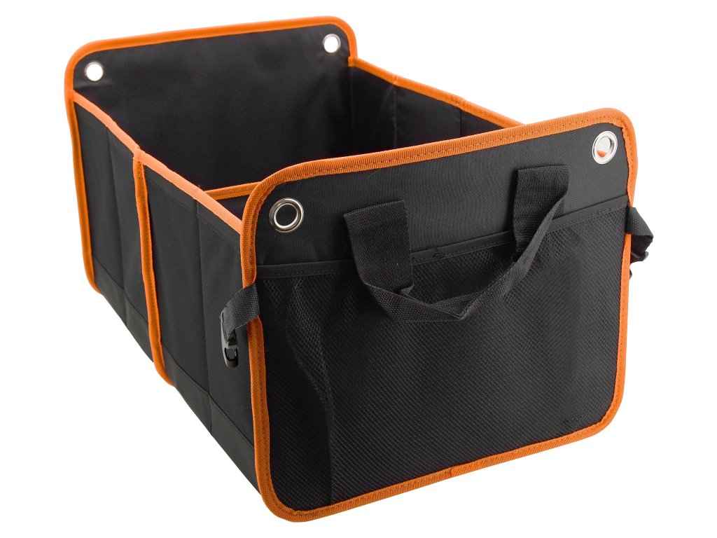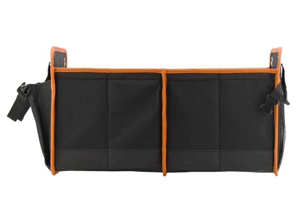Organizér s rozměry 54 x 34 x 31 cm je zhotoven ze 100% polyesteru, kvalitně obšitého oranžovým lemem.