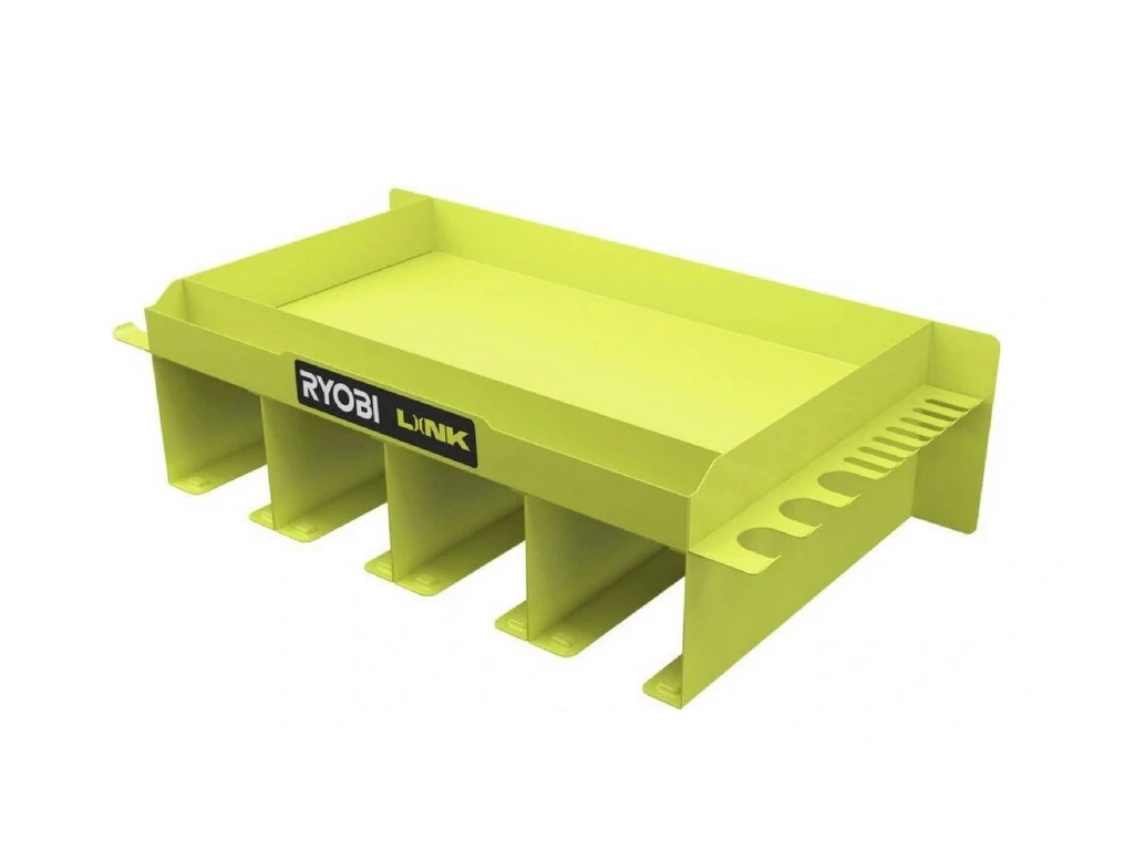 Police Ryobi LINK RSLW401 disponuje solidní konstrukcí a unese až 22,7 kg, takže zvládne větší akumulátorové vrtačky či rázové utahováky. Plastová konstrukce nabízí lehkost při zachování stability potřebné pro každodenní použití v dílně.