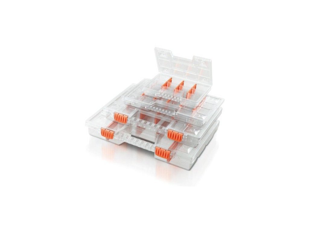 Přenosný ruční kufřík, organizér na šroubky, matice, podložky, těsnění a jiné drobné věci. Všestranné využití v domácnostech, dílnách apod. Vhodný také pro rybářské potřeby (háčky, návnady apod.).