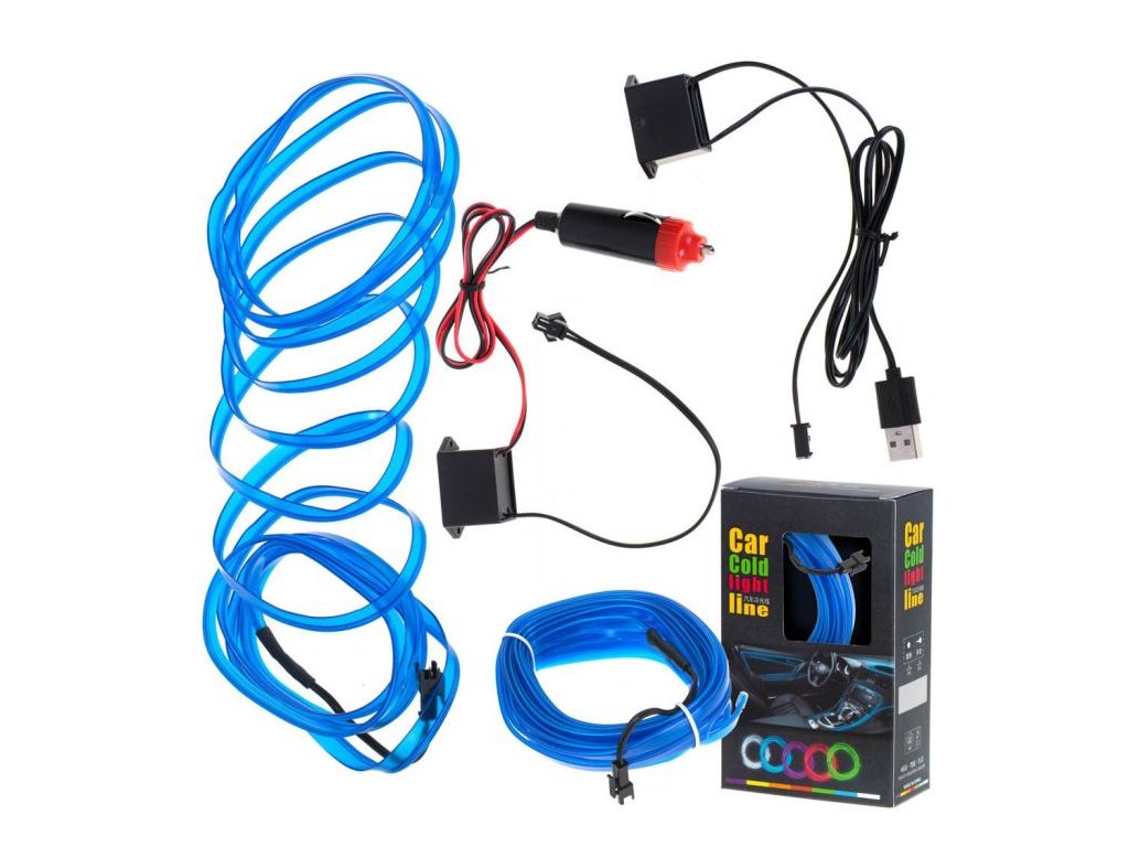 Osvětlení interiéru auta ambietní USB/12V, 3m modré