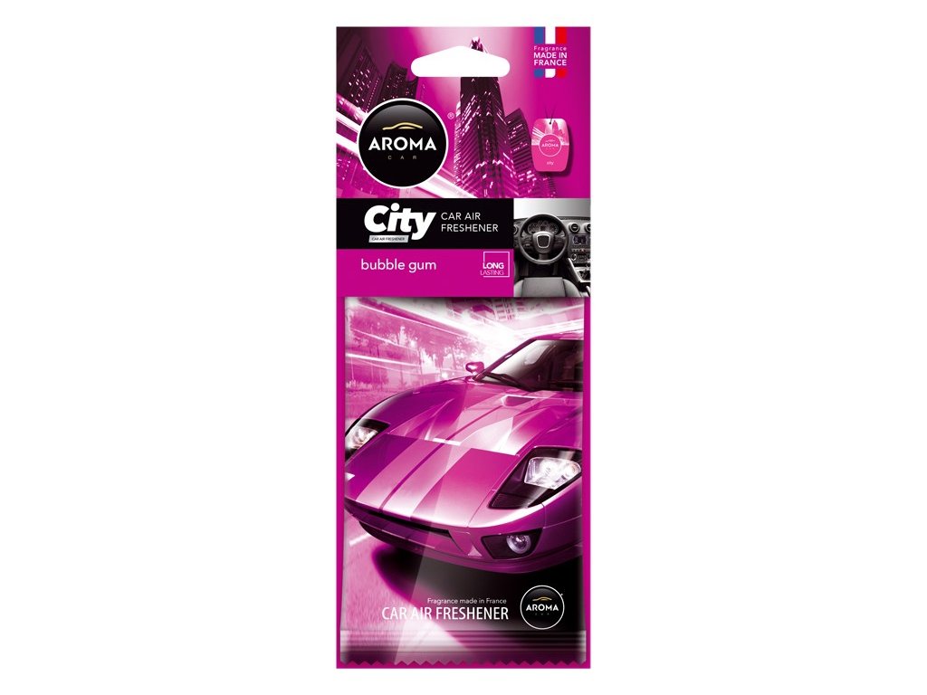 AROMA CAR CITY BUBBLE GUM: Moderní papírový osvěžovač vzduchu, vyrobený ze surovin nejvyšší kvality