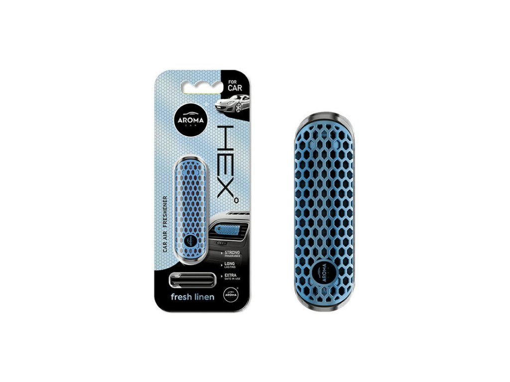 HEX je nová řada polymerových osvěžovačů vzduchu do ventilační mřížky. Stylový a zároveň nenápadný výrobek s příjemným složením vůně, který je ideálním společníkem na cesty.