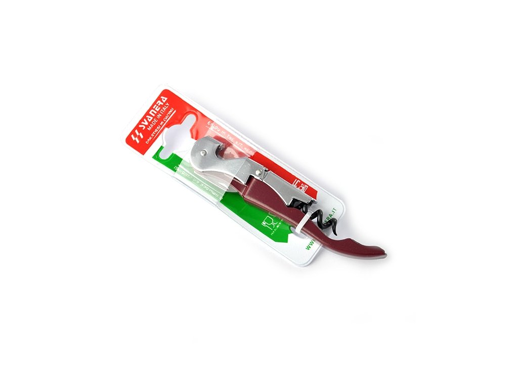 Kvalitní číšnický otvírák vyrobený z nerezi a plastu.Obsahuje nástroje korunkový otvírák, vývrtku a malý nožík.