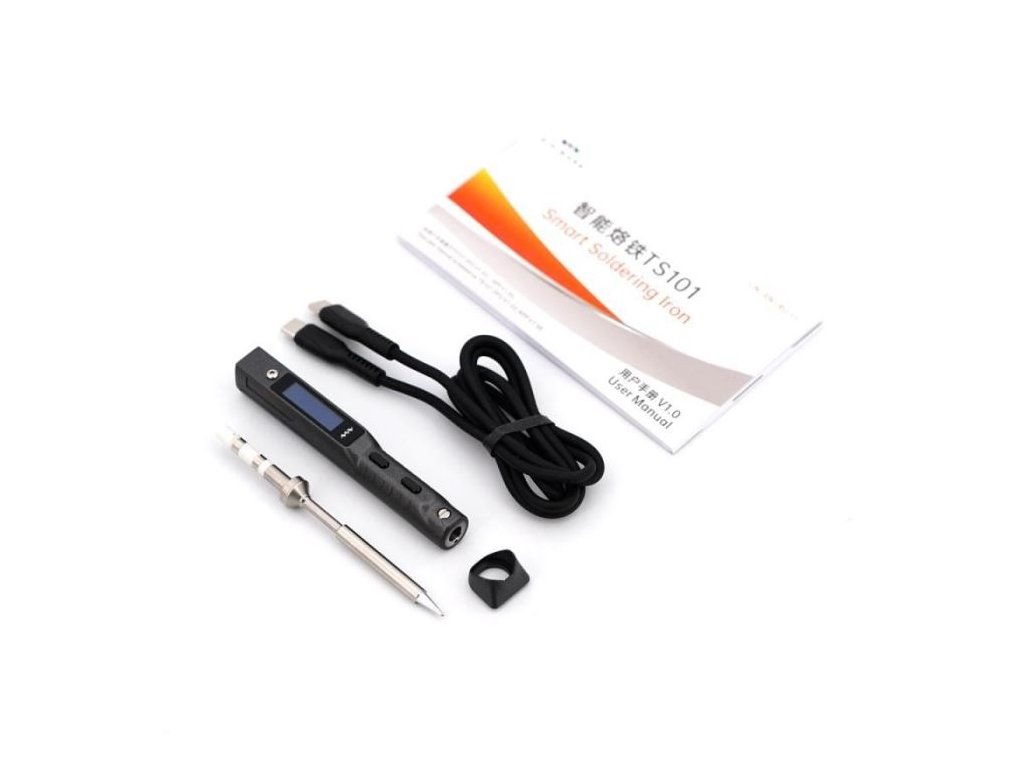 TS101 má OLED displej s rozlišením 128x32 pixelů, na které jsou zobrazeny všechny potřebné informace. Změněný byl typ šroubku pro uchycení hrotu pro snazší výměnu. Vylepšený je také tvar páječky v místě úchopu, na který lze nasadit další část. Pájecí pero neklouže a díky spodní zploštělé části lze odložit tak, aby byl hrot ve vzduchu apájecí pero se nekutálelo. Příjemnou zprávou je také zpětná kompatibilita. TS101 lze použít se stejnými hroty jako TS100. Dodáváme s hrotem v provedení ”BC2”.