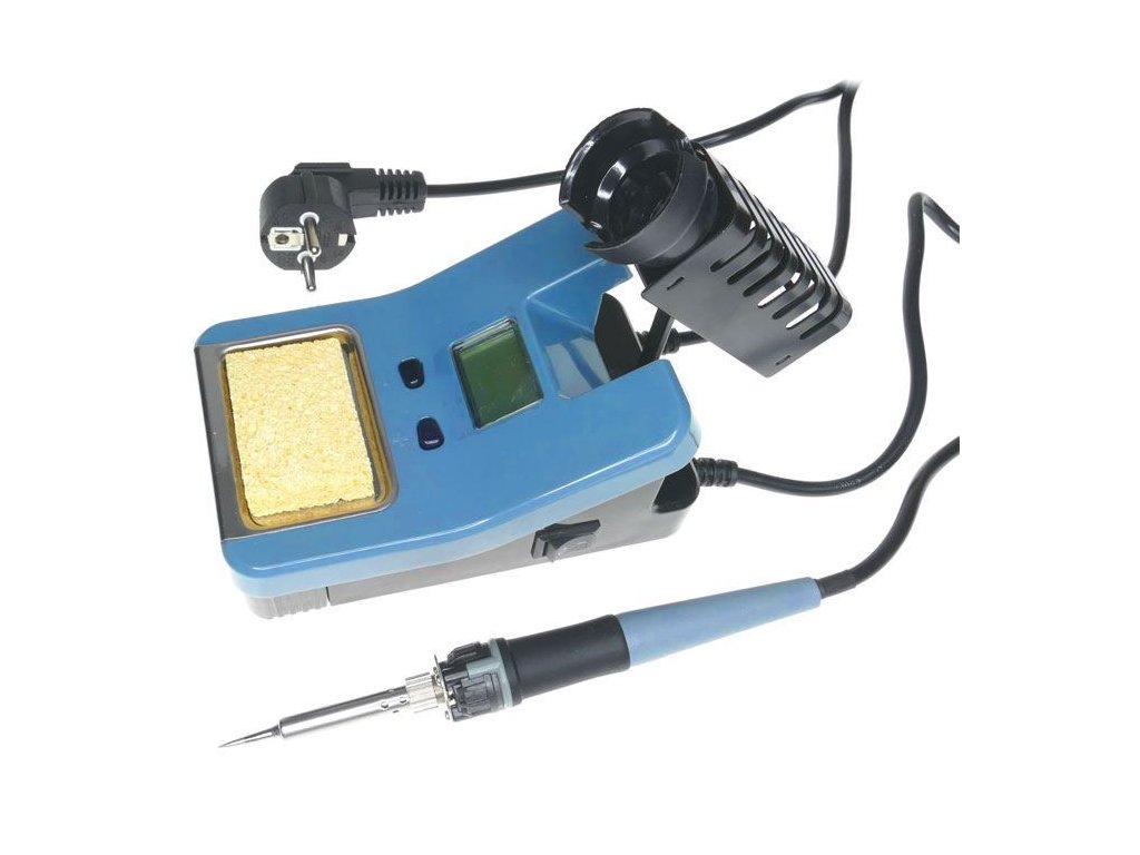 Stolní mikropájka s regulací teploty a vyměnitelným hroty. LCD displej s podsvětlením, houba pro otírání hrotu.**Specifikace:**