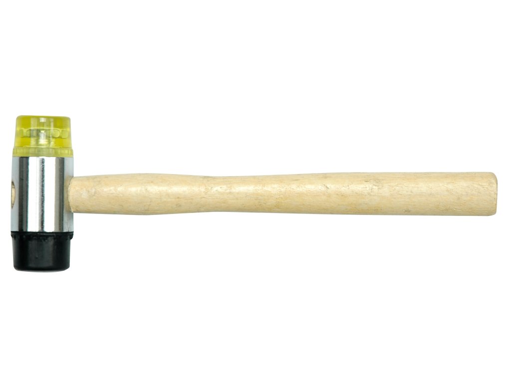 Na jedné straně gumová a na druhé kovová. Nasazené na dřevěnou, lakovanou rukojeť.