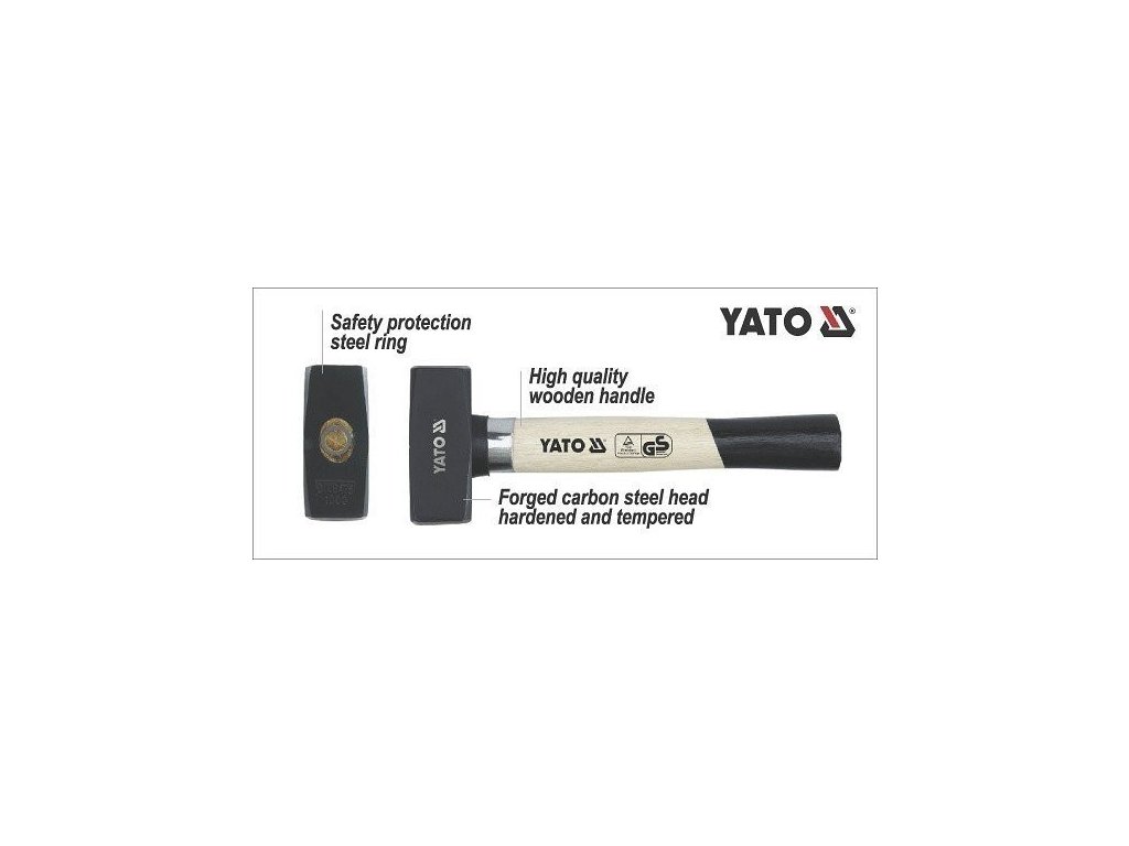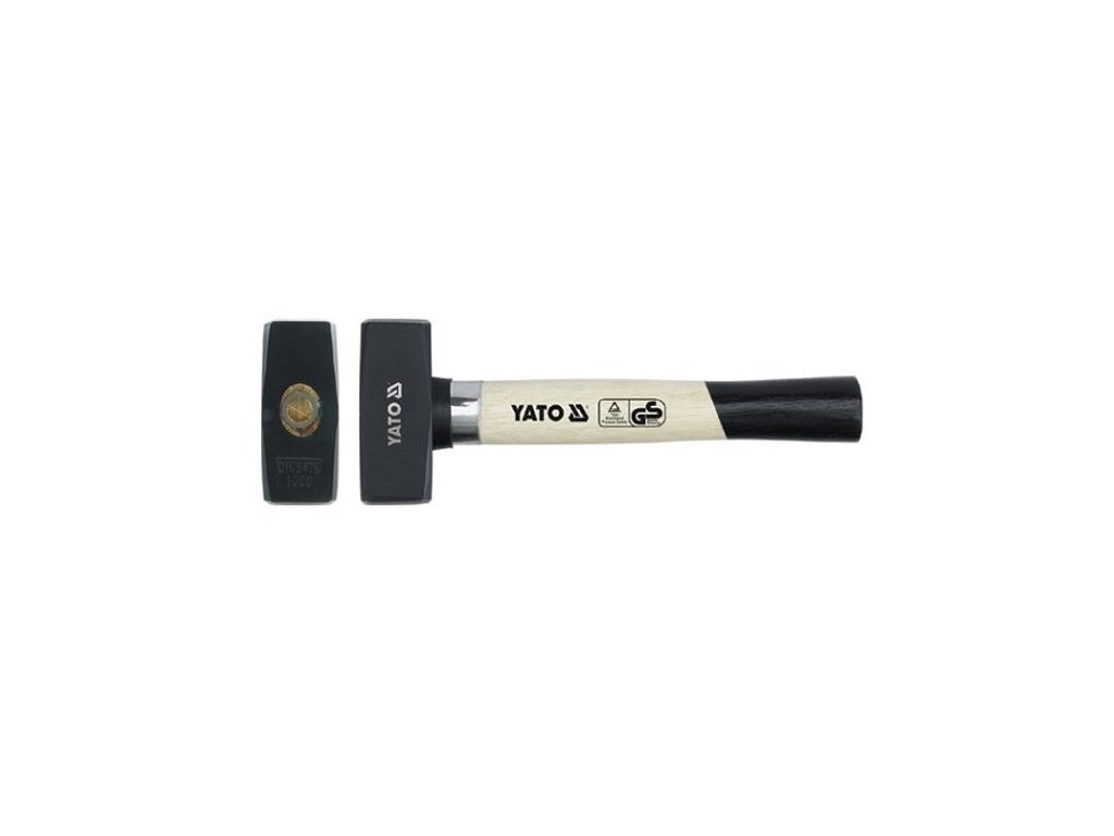 Kvalitní kovová palička Yato o hmotnosti 2000 gramů s dřevěnou násadou .
