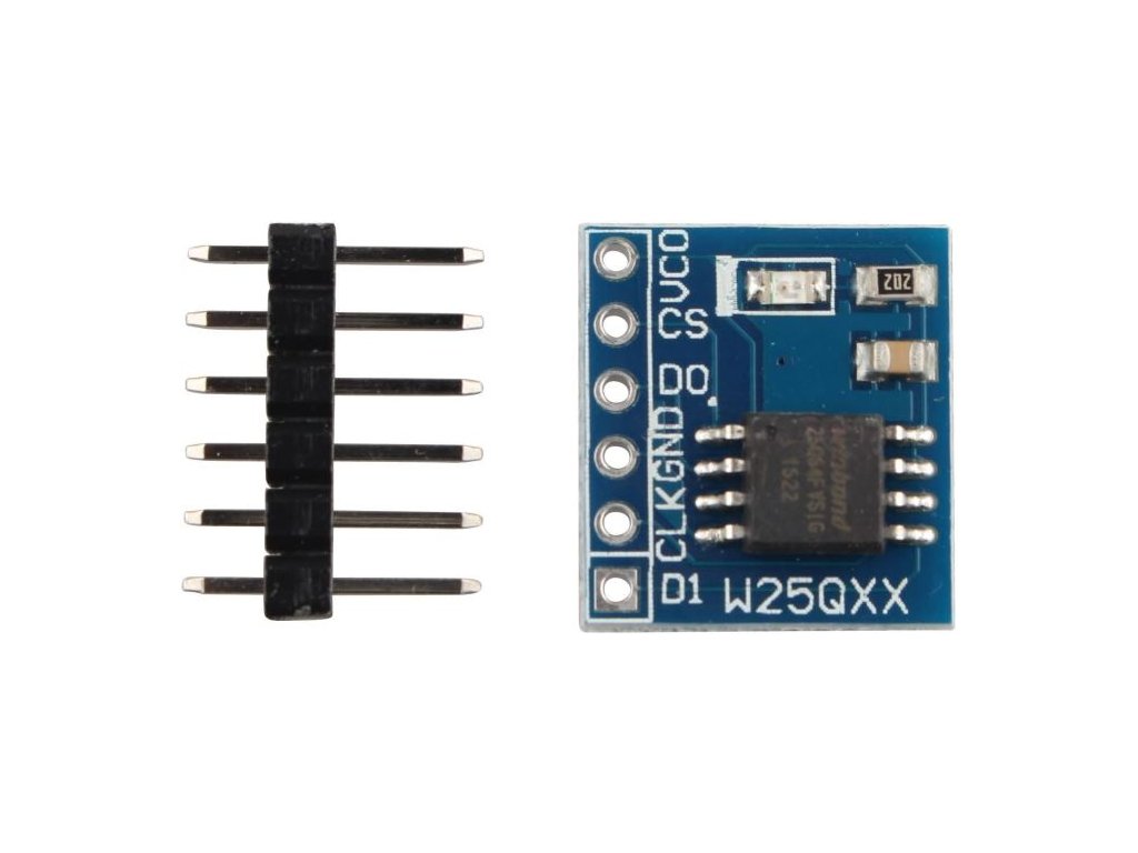 Tento modul je osazen čipem W25Q64, který má kapacitu 64Mb. Komunikuje s Arduino přes SPI, což umožňuje mnohem jednodušeji ukládat data.**Specifikace:**