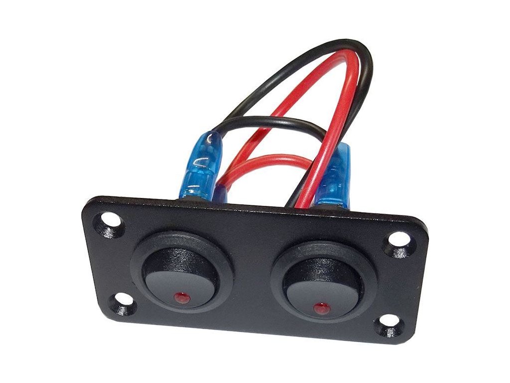 Panel 73x35mm hliníkový se 2 vypínači s prosvětlením včetně 4 černých vrutů 4x25mm4x 1pólový vypínač s prosvětlením 12V/20A - 24V/10A4x plochá autopojistka