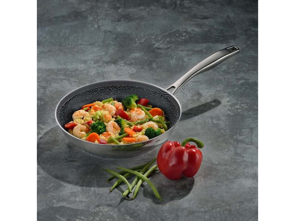 Objevte novou hvězdu vaší kuchyně! Pánev Flavoria z nerezové oceli v sobě spojuje eleganci, odolnost a špičkovou funkčnost. Díky unikátní voštinové struktuře a keramickému nepřilnavému povrchu se stane vaším každodenním pomocníkem, na kterého se můžete spolehnout.