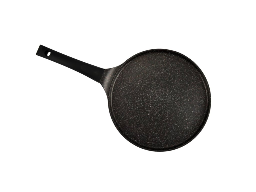 Nepřilnavým povrchem potažená palačinková pánev o průměru 26 cm, je odolná, praktická a pohodlná nádoba, která se bude skvěle hodit pro přípravu lahodných palačinek.Pánev je vyrobena z kvalitního hliníku a je odolná vůči mechanickému zatížení, což zajišťuje její dlouhodobou životnost.
