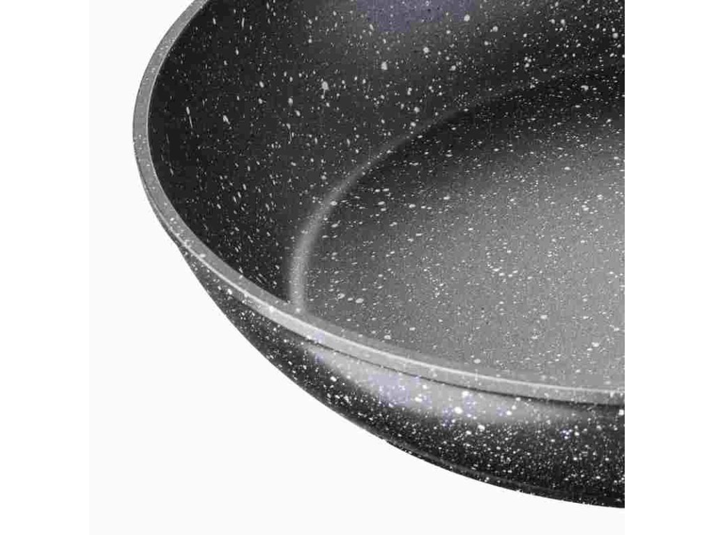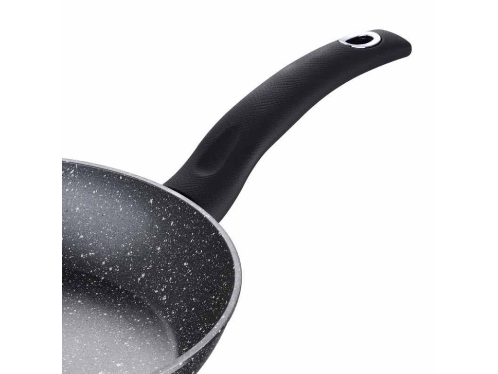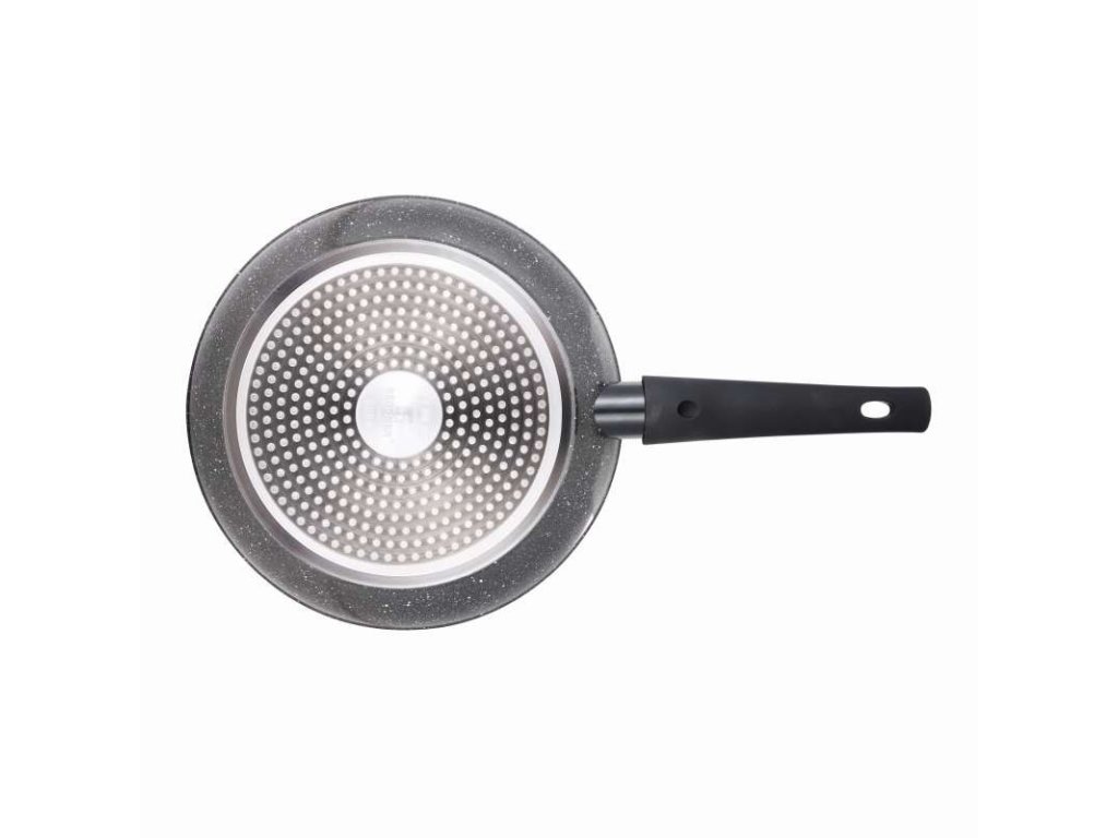 •Rozměry: 26 x 5,0 cm • Vyrobeno z prémiového kovaného hliníku pro lepší odolnost proti korozi a opotřebení. •Vnitřek pánve má nepřilnavou povrchovou úpravu z mramoru, která zabraňuje přichycení jídla a zlepšuje vaření. • Pánev má indukční dno, které rovnoměrně rozvádí teplo po celém povrchu. Tato základna je kompatibilní se všemi varnými deskami na trhu, včetně indukčních • Šedá rukojeť s povrchovou úpravou Soft Touch a chromovou vložkou. • Možno mýt v myčce.Pánev o průměru 26 cm je vyrobena z odolného kovaného hliníku pro rychlé a rovnoměrné rozložení tepla nádobí bez horkých míst, je odolná a ušetří vám spoustu energie. Nepřilnavý povlak Marble + dosahuje rovnoměrnějšího a trvalejšího uvolňovacího efektu a je extrémně odolný proti poškrábání, jídlo se lepí a snadno se čistí. Základna s bodovou indukcí je vhodná pro všechny varné desky jako indukční, plynové, sklokeramické, halogenové a elektrické. Šedé provedení s bílými tečkami a ergonomická rukojeť s hadím vzorem s měkkým dotekem zlepší vaše kuchařské dovednosti. Pro prodloužení životnosti produktu se doporučuje ruční čištění. Ideální pro všechny kuchaře, od začátečníků po zkušené kuchaře!