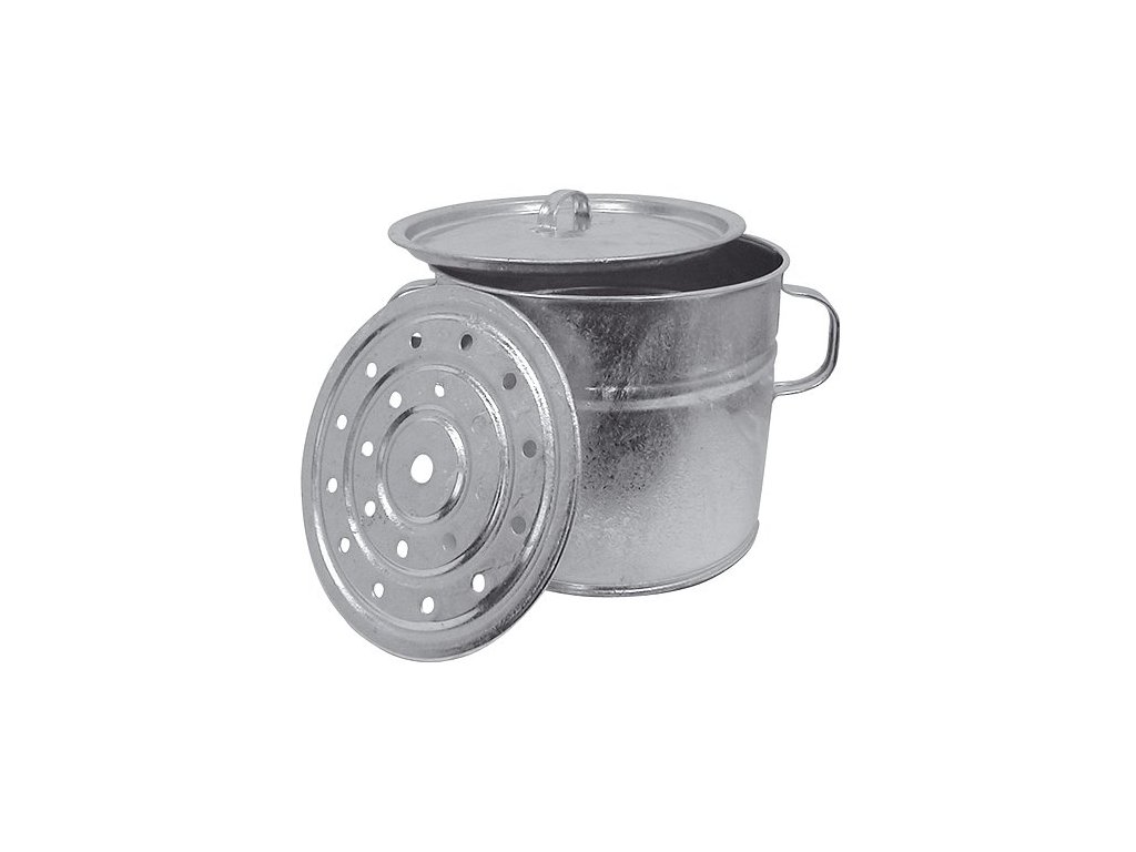 Objem 15 litrů, průměr 29.5 cm a výška 25 cm.Zinkovaná nádoba.