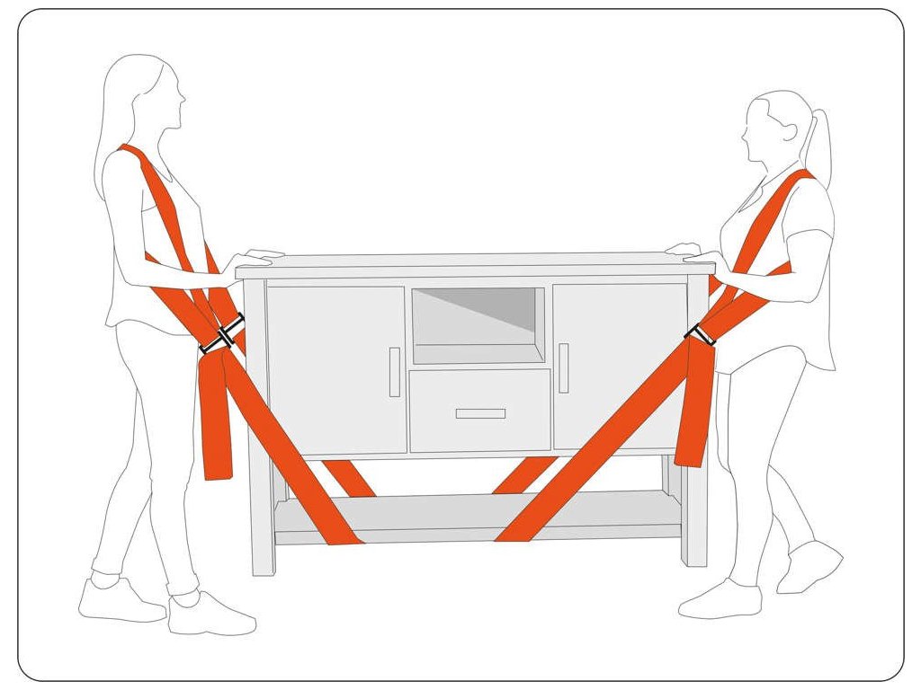 Pásy, v závislosti na modelu, nasazené na záda / jako postroj / nebo na předloktí, dokonale usnadňují přenos těžkých, velkých předmětů, snižují námahu a zvyšují bezpečnost práce a chrání přenášený nábytek před poškozením. Rozměry cca 8 x 280 cm.