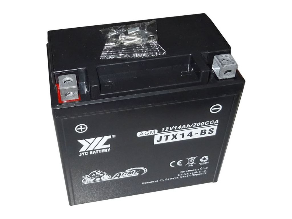 Pb akumulátor JYC JTX14-BS AGM pro motocykly 12V/14Ah levý