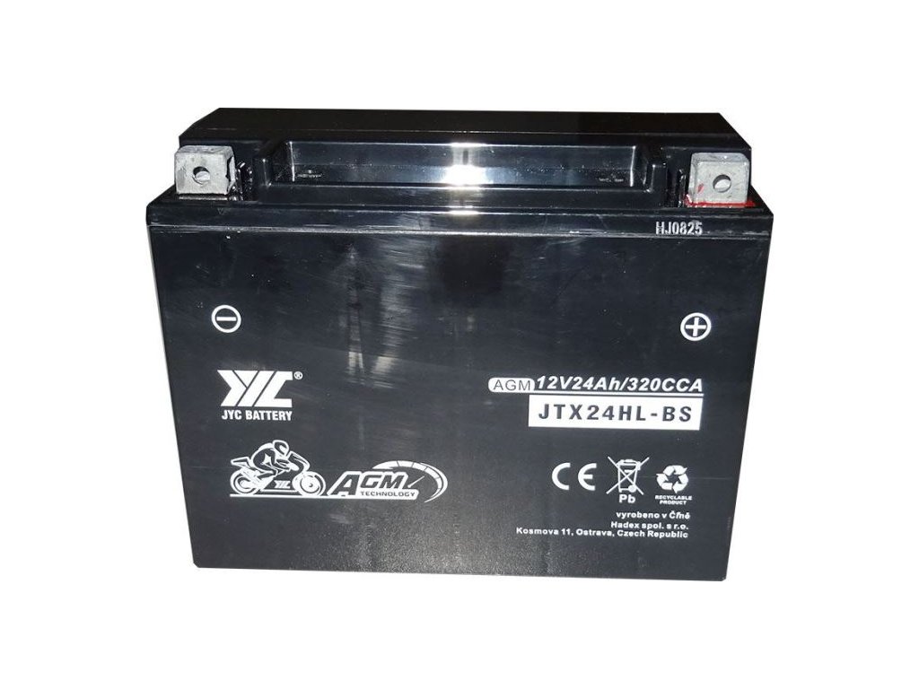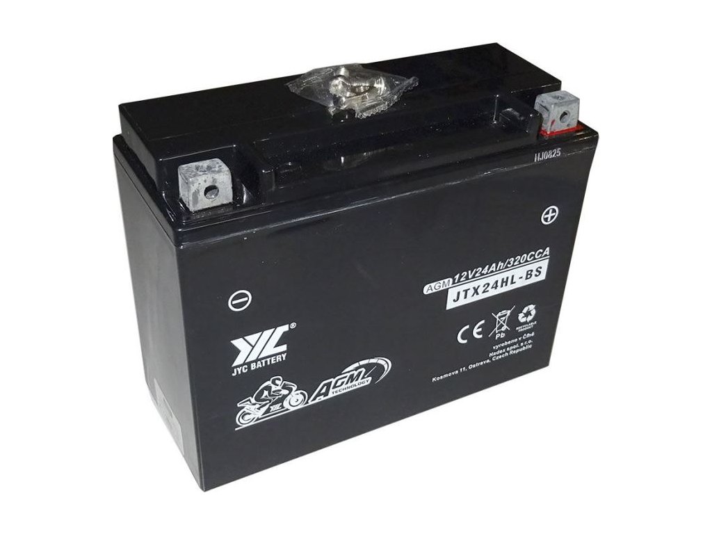 Pb akumulátor JYC JTX24HL-BS AGM pro motocykly 12V/24Ah pravý Olověná baterie AGM pro motocykly, bezúdržbová, hermeticky uzavřená.**Specifikace:**