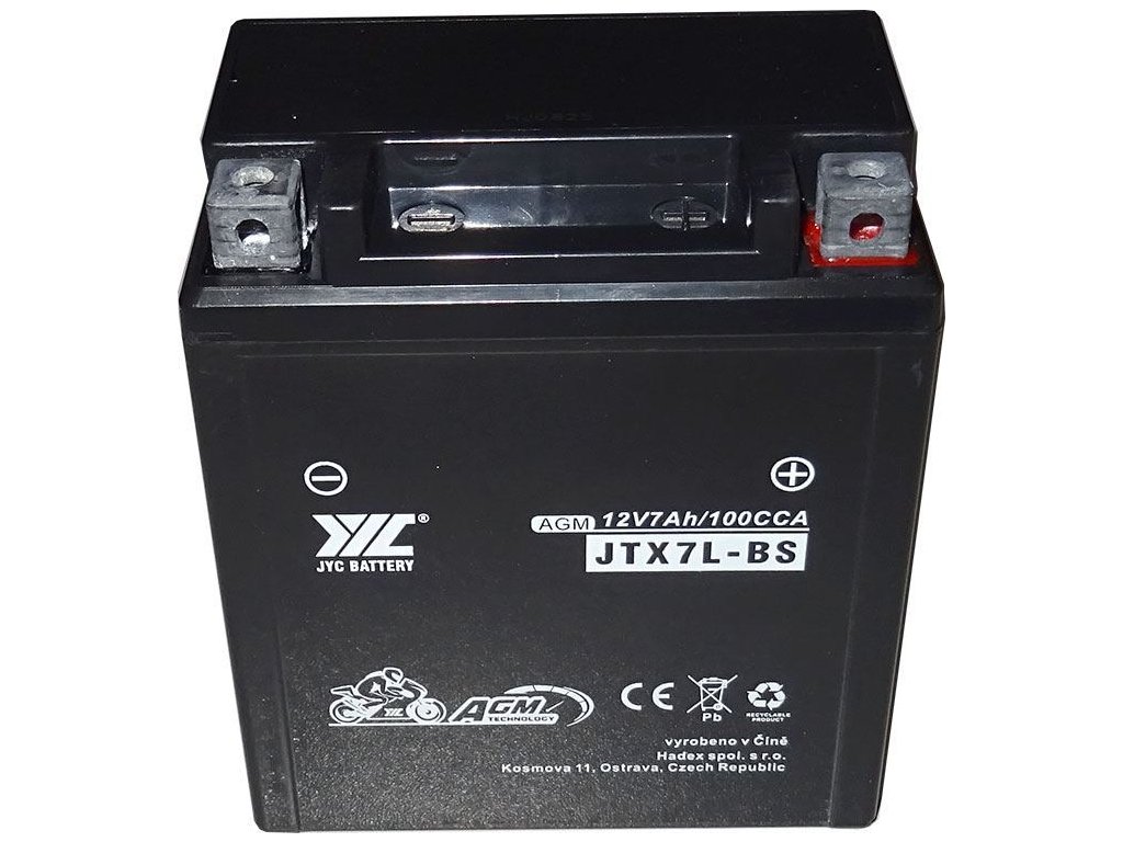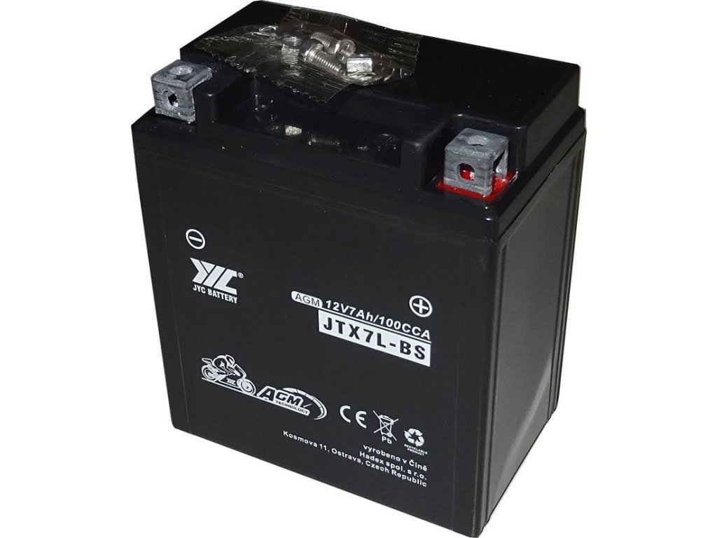 Pb akumulátor JYC JTX7L-BS AGM pro motocykly 12V/7Ah pravý Olověná baterie AGM pro motocykly, bezúdržbová, hermeticky uzavřená.**Specifikace:**