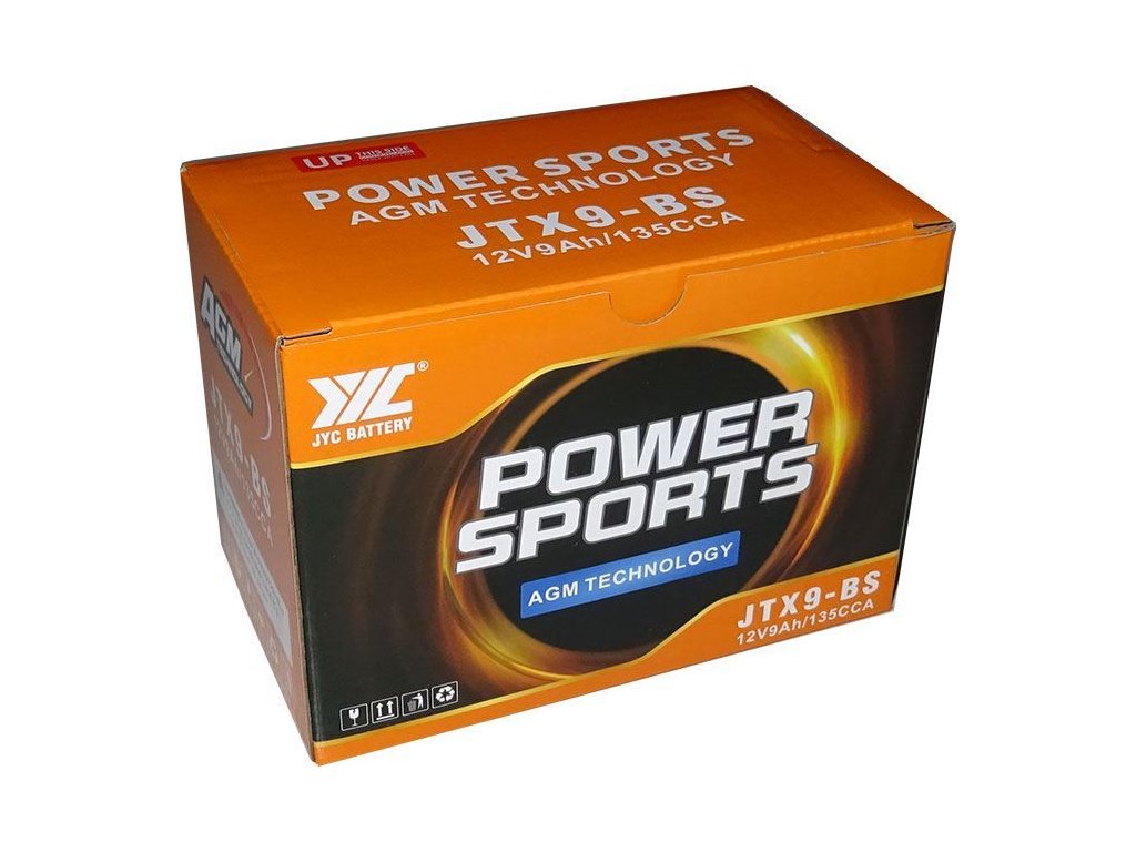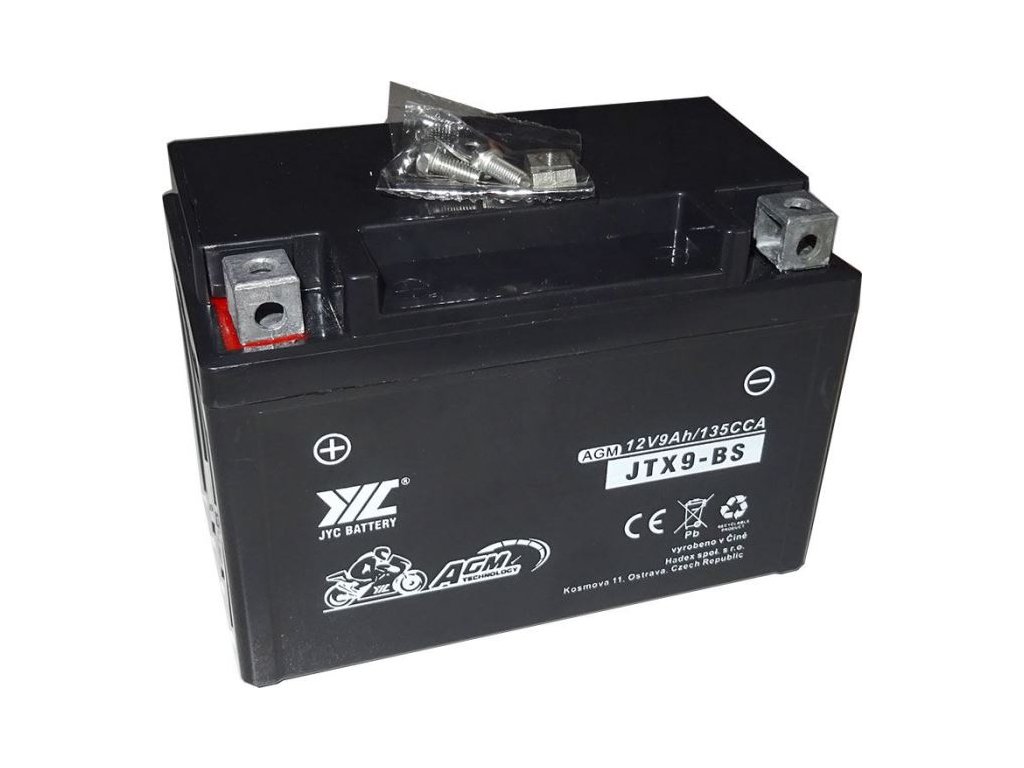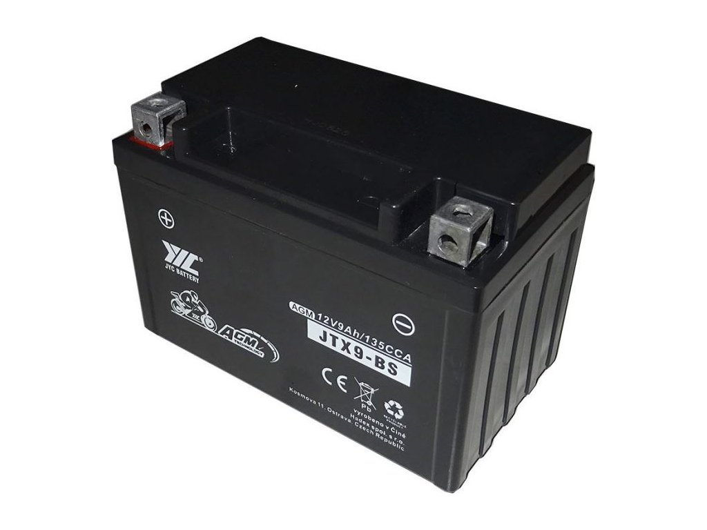 Pb akumulátor JYC JTX9-BS AGM pro motocykly 12V/9Ah levý Olověná baterie AGM pro motocykly, bezúdržbová, hermeticky uzavřená.**Specifikace:**