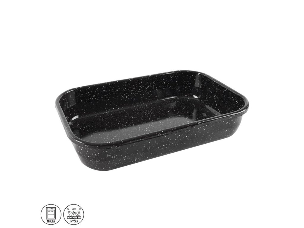 Jednodílný oboustranně smaltovaný pekáč bez ucha.Vnější rozměry 41.5 x 27 x 7.5 cm, objem 6.5 litru.