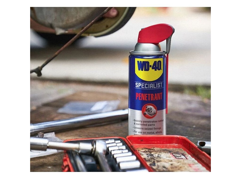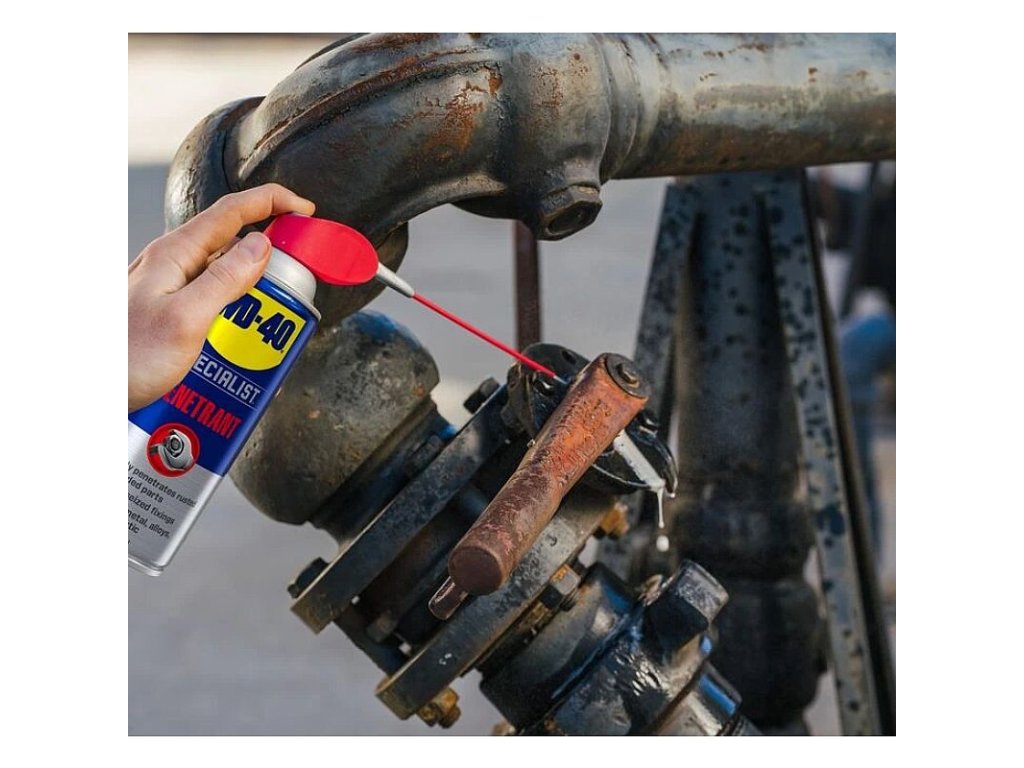 WD-40 Specialist Penetrant odolává vodě, vytěsňuje vlhkost a tím podporuje plynulý chod součástí. Lze jej využít nejen k opravám, ale také preventivně pro ochranu proti korozi.
