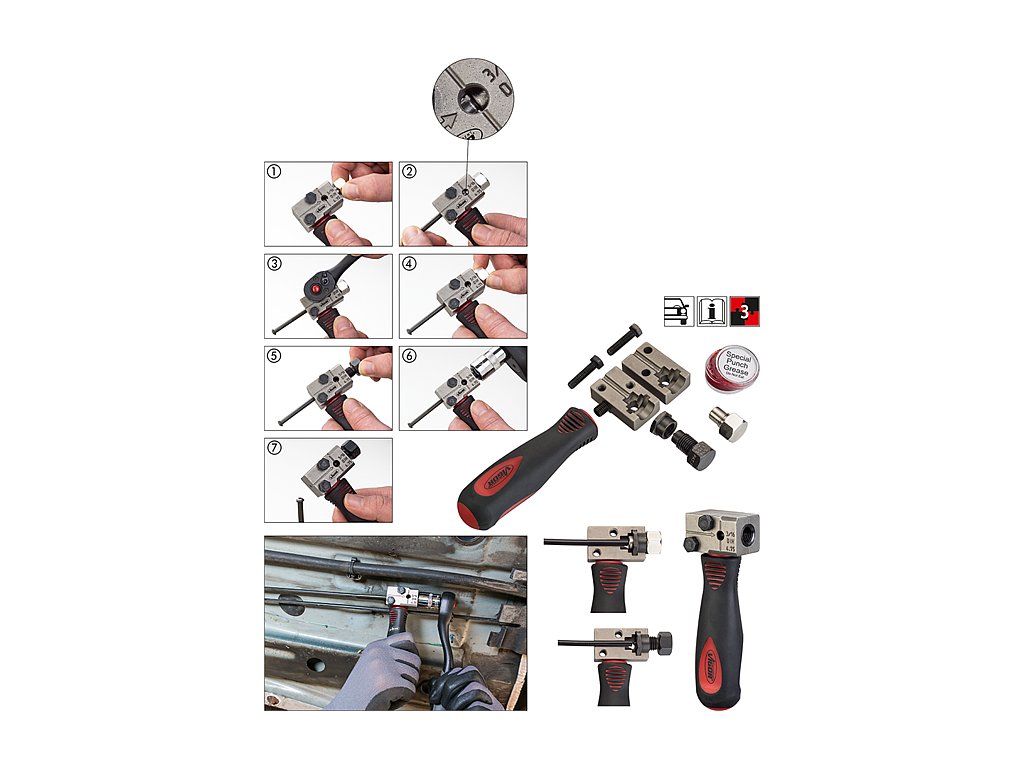 - Pertlovačka pro snadné a přesné pertlování brzdových trubek přímo na vozidle.