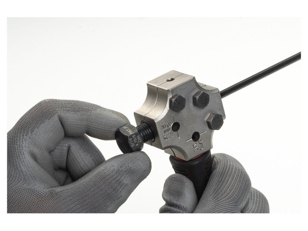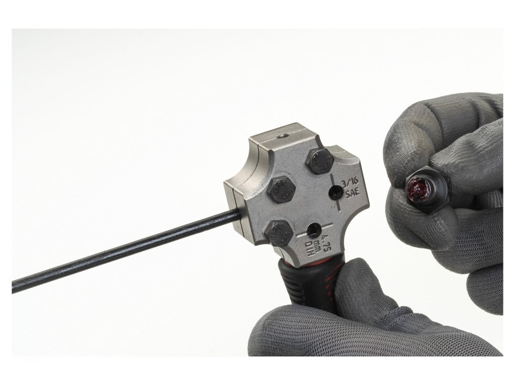 - Pertlovačka pro lemování vedení o průměru 4,75 mm podle standardů DIN (tzv. hříbek - nejobvyklejší profil) a SAE (tzv. trychtýř)