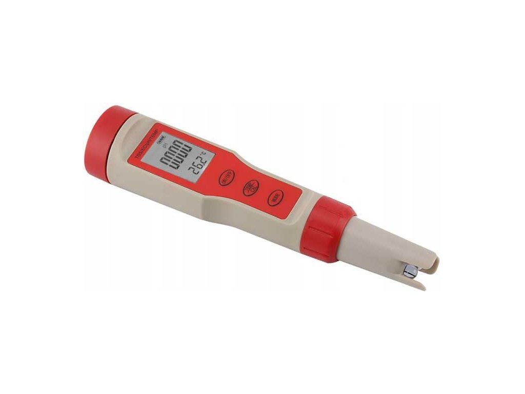 Tento přístroj 4 v 1 je určen k měření pH, EC (elektrická vodivost), TDS (celkové množství rozpuštěných pevných látek TDS - Total Dissolved Solids) a zároveň umí měřit teplotu. Digitálním měřičem lzesnadno analyzovat čistotu a kvalitu vody například v bazénech, akváriích a v čističkách odpadních vod apod. TDS/EC/PH metr má snadno vyměnitelnou elektrodu (uživatelským způsobem). Měřidlo je kompaktní, snadné přenositelné a spolehlivé. <BR/>**Technické parametry:** <BR/>měřicí rozsah pH 0,00 - 14.00 <BR/>přesnost ± 0,1 pH <BR/>rozlišení 0,01 pH <BR/>měřicí rozsah TDS 0-1000ppm<BR/>přesnost: ± 2 %<BR/>rozlišení 1 ppm<BR/>měřící rozah EC 0-10000US/cm<BR/>přesnost: ± 2 %<BR/>rozlišení 1 US/cm<BR/>měřicí rozsah teploty 0,1 °C - 60 °C<BR/>přesnost: ± 1 °C<BR/>rozlišení: 0,1 °C<BR/>přepínatelné jednotky teploty °C / °F<BR/>automatická teplotní kompenzace 0,1 °C - 60 °C<BR/>rozměry: 188 x 40 x 40 mm<BR/>hmotnost: 80 g<BR/>baterie: 4 x 1,5 AG-13 knoflíková baterie (není součástí balení)Doplňkové parametry