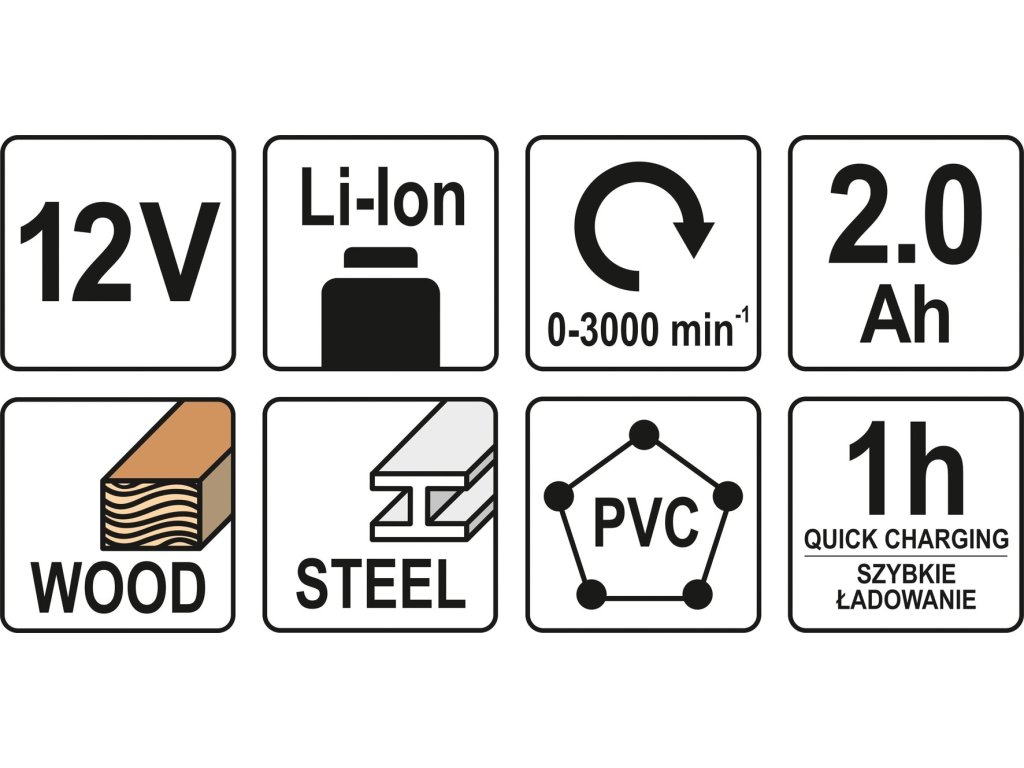 O pohon nástroje se stará 12V 2 Ah Li-ion akumulátor.