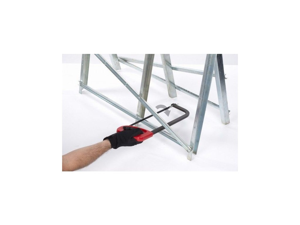 Pilový plátek z kvalitní uhlíkové oceli zaručuje vysokou odolnost proti opotřebení a dlouhodobě ostrý řez. Uhlíková ocel poskytuje optimální kombinaci pevnosti a pružnosti, což je zásadní pro efektivní práci s kovovými materiály. Plastová rukojeť nabízí ergonomické uchopení a snižuje únavu při dlouhodobém používání.