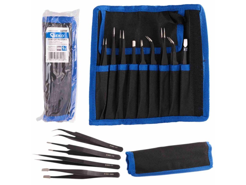 Pinzety antistatické, sada 9 ks - GEKO