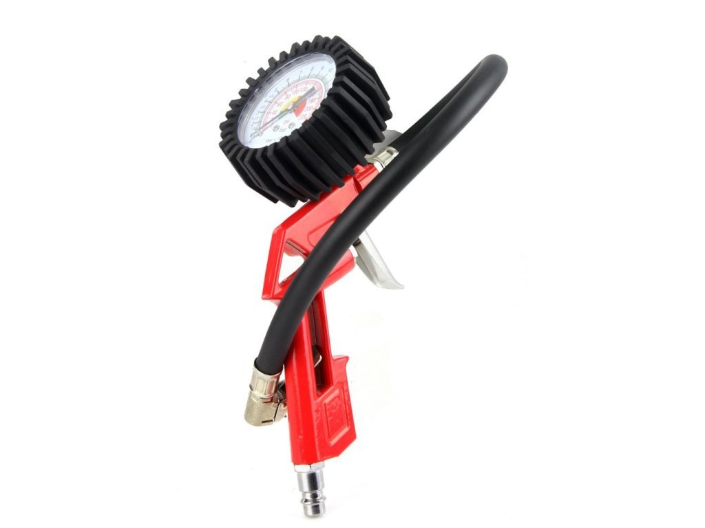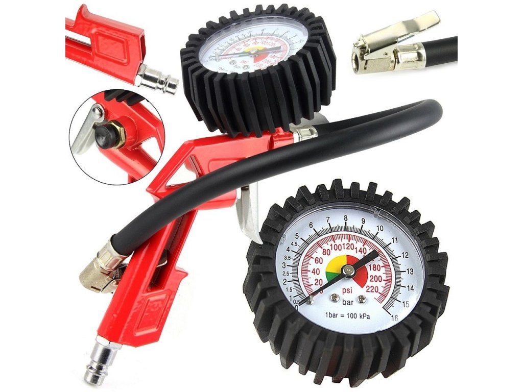 Pistole na huštění pneumatik ukazuje tlak v huštěné pneumatice.