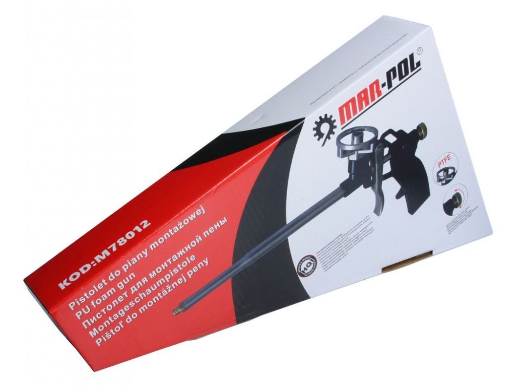 Pistole na montážní pěnu MAR-POL je profesionální klasická pistole určené pro aplikace polyuretanových pěn. Pistole je vybavena knoflíkem k řízení toku pěny.