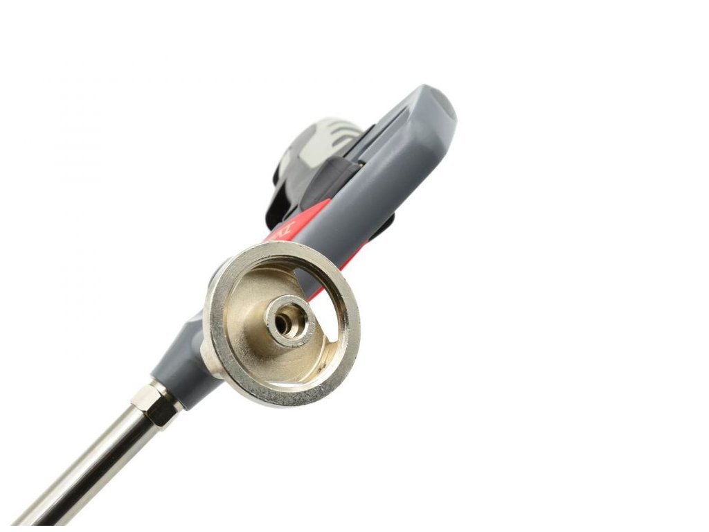 - Poloha knoflíku pro nastavení průtoku pěny umožňuje ovládání jednou rukou