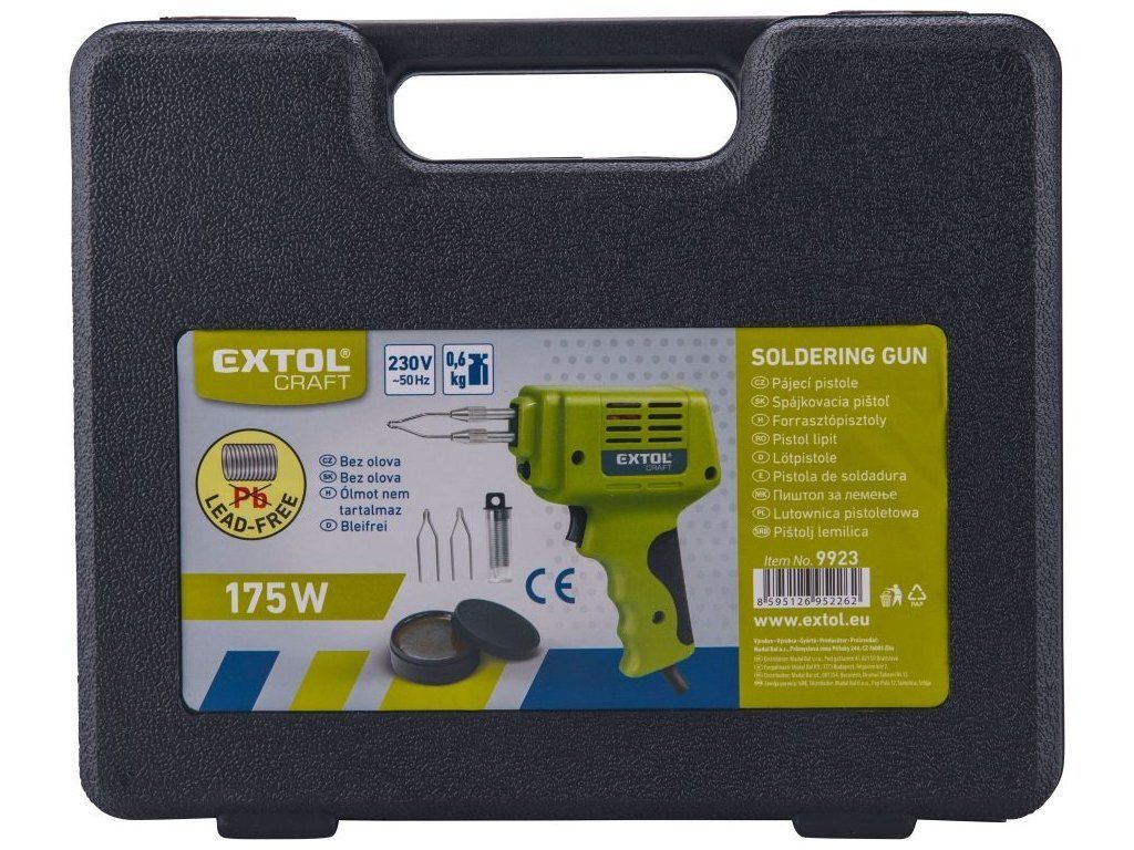 Pistole pájecí transformátorová s příslušenstvím 175W, EXTOL CRAFT