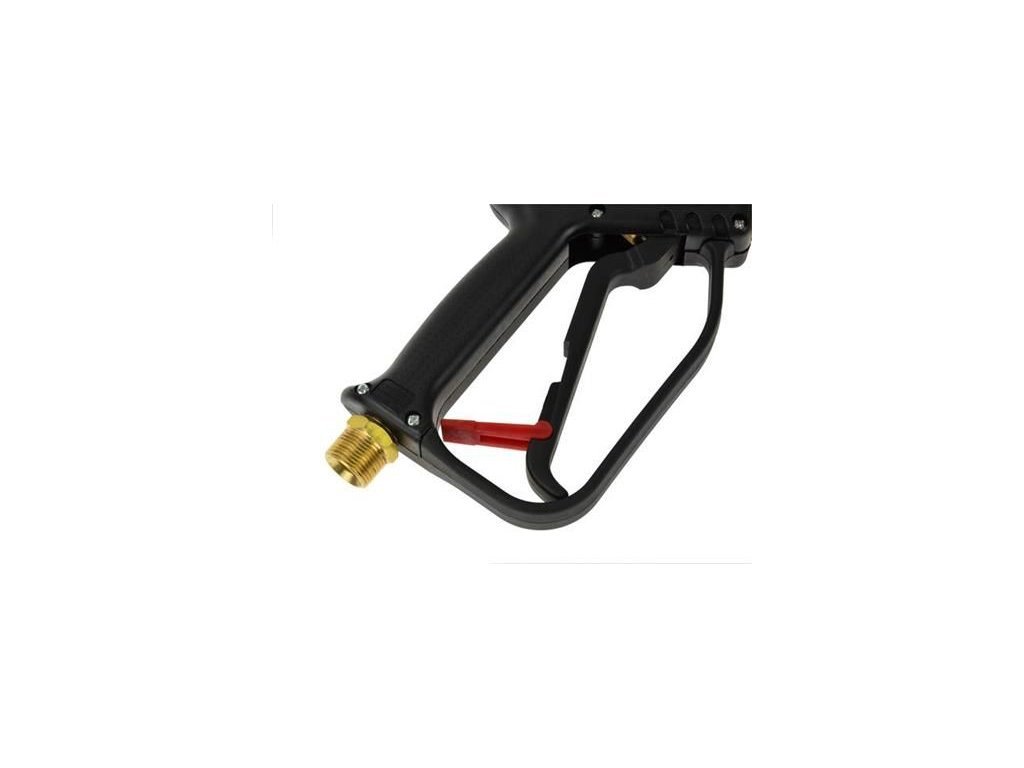 Profesionální pistole pro vysokotlaké myčky KARCHER HD/HDS. Pistole je vyrobena z vysoce kvalitních součástí, přizpůsobených pro práci s tlakem až 280 barů. Vybaveno připojovacím závitem M22x1.5 (ze strany trysky a tlakové hadice). Pistole je kompatibilní s většinou příslušenství KARCHER. Ergonomický tvar rukojeti poskytuje pohodlí při práci. Pistole má také zámek, který zabraňuje náhodnému spuštění a ovládání zařízení.