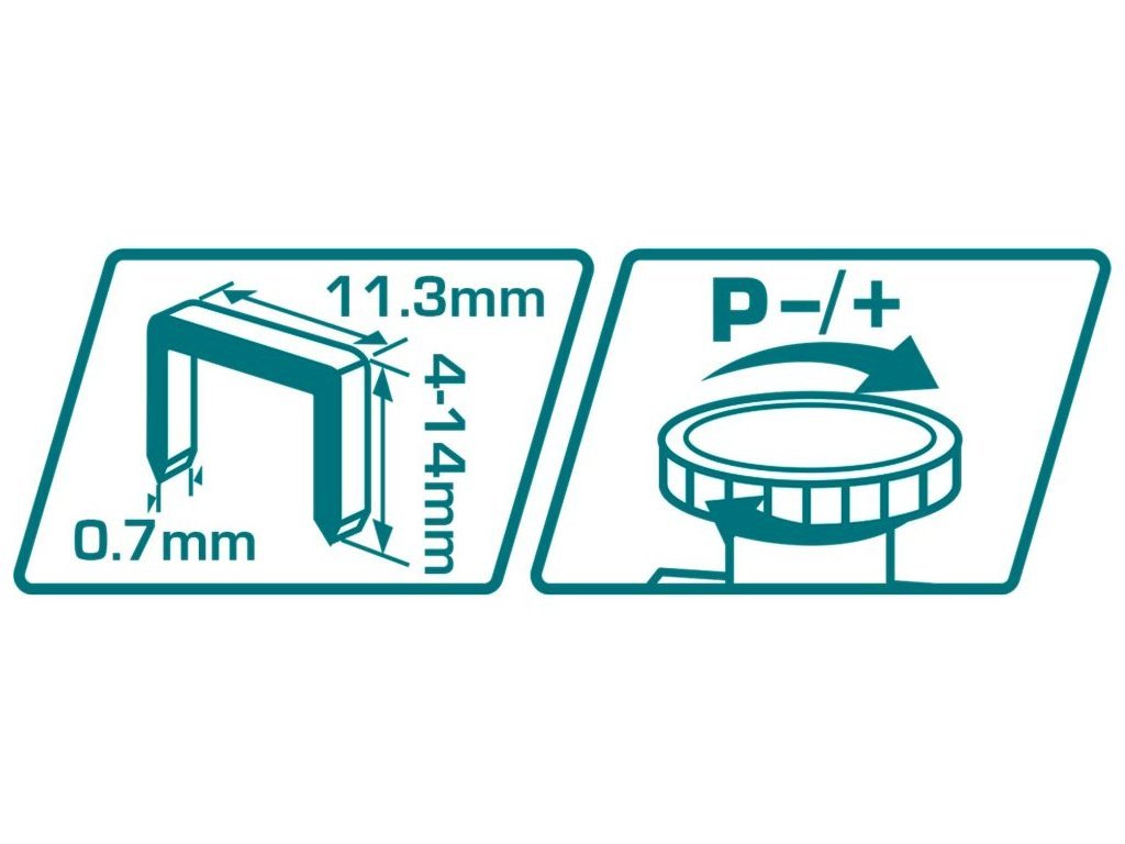 Průmyslová sešívačka s nastavitelnou silou, sponky (11,3 mm) délky 4-14 mm.